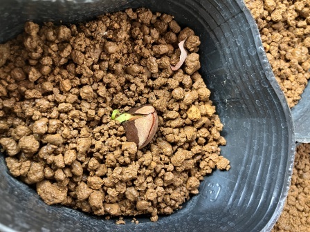 ようやく1ポット、発芽の兆候が見られ始めました