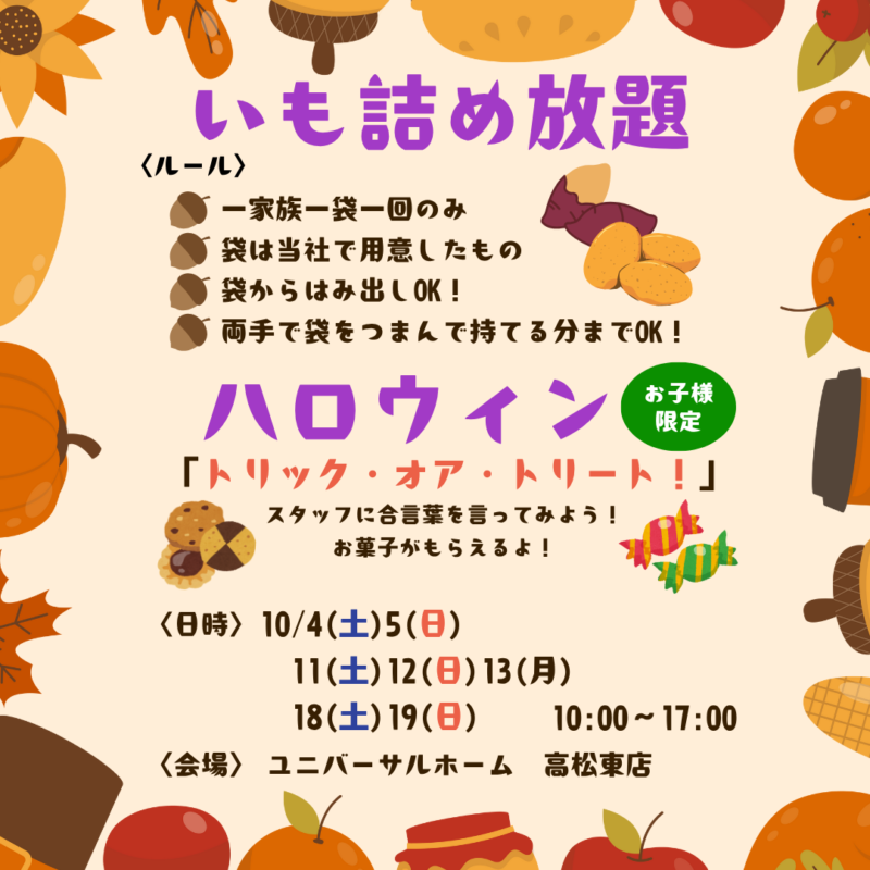 🍠高松東店10月イベント情報🍠
