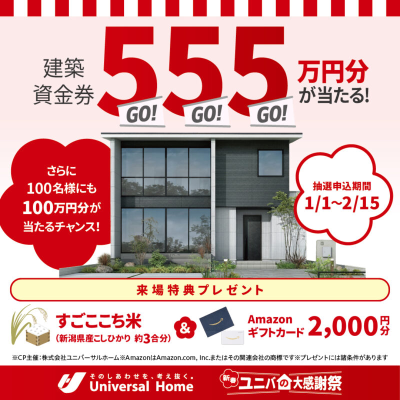 建築資金555万円を全国抽選で1棟プレゼントします!