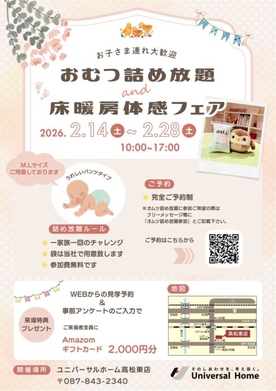 第3回 『おむつ詰め放題&床暖房体感フェア』2/14(土)~2/28(土)