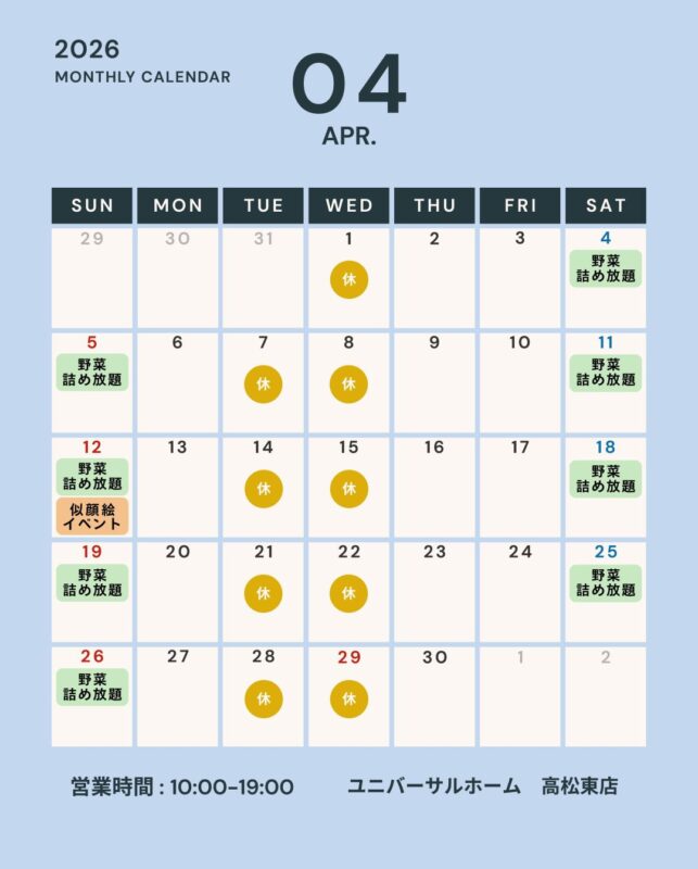 | 開催場所 | ユニバーサルホーム高松東店 |
