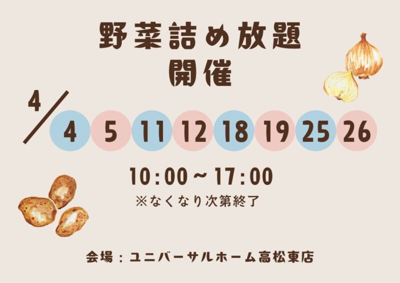 ★大人気イベント★4月毎週土日野菜詰め放題開催決定★