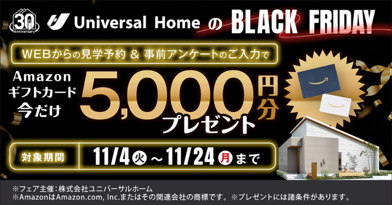 来場特典Amazonギフトカード5,000円分11/24(月・祝)まで